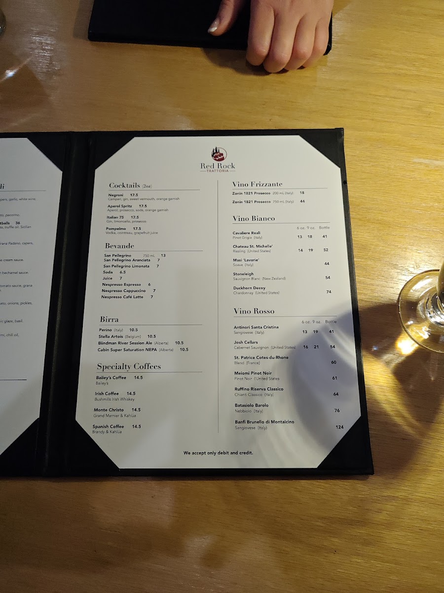 Welcome to Red Rock Trattoria, a hidden gem nestled in the heart of Waterton Park. This cozy Italian eatery offers a delightful menu that captivates both locals and visitors. Diners rave about standout dishes like the bison lasagna, which combines expertly prepared pasta with richly flavored fillings, and the chicken marsala, tenderly cooked and enhanced by aromatic au jus.